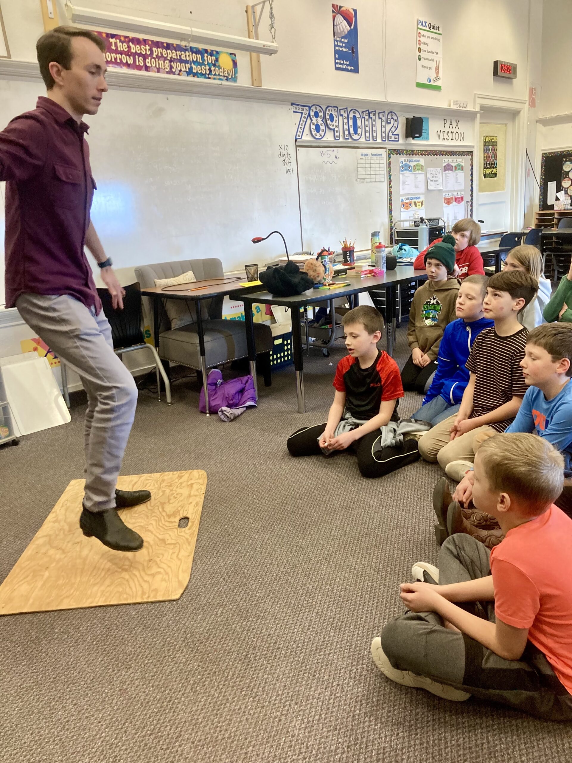 Fourth grade students explore emotion and physical expression in our Rhythm and Movement Workshop led by teaching artists Brandon Taylor and Retta Leaphart. Brandon kicks off the experience with an inspiring tap-dancing demo. Students then explore using different parts of the body to create a rhythmic sequence, which leads into interactive group work where students develop small performances that use rhythm and movement to communicate specific emotions.