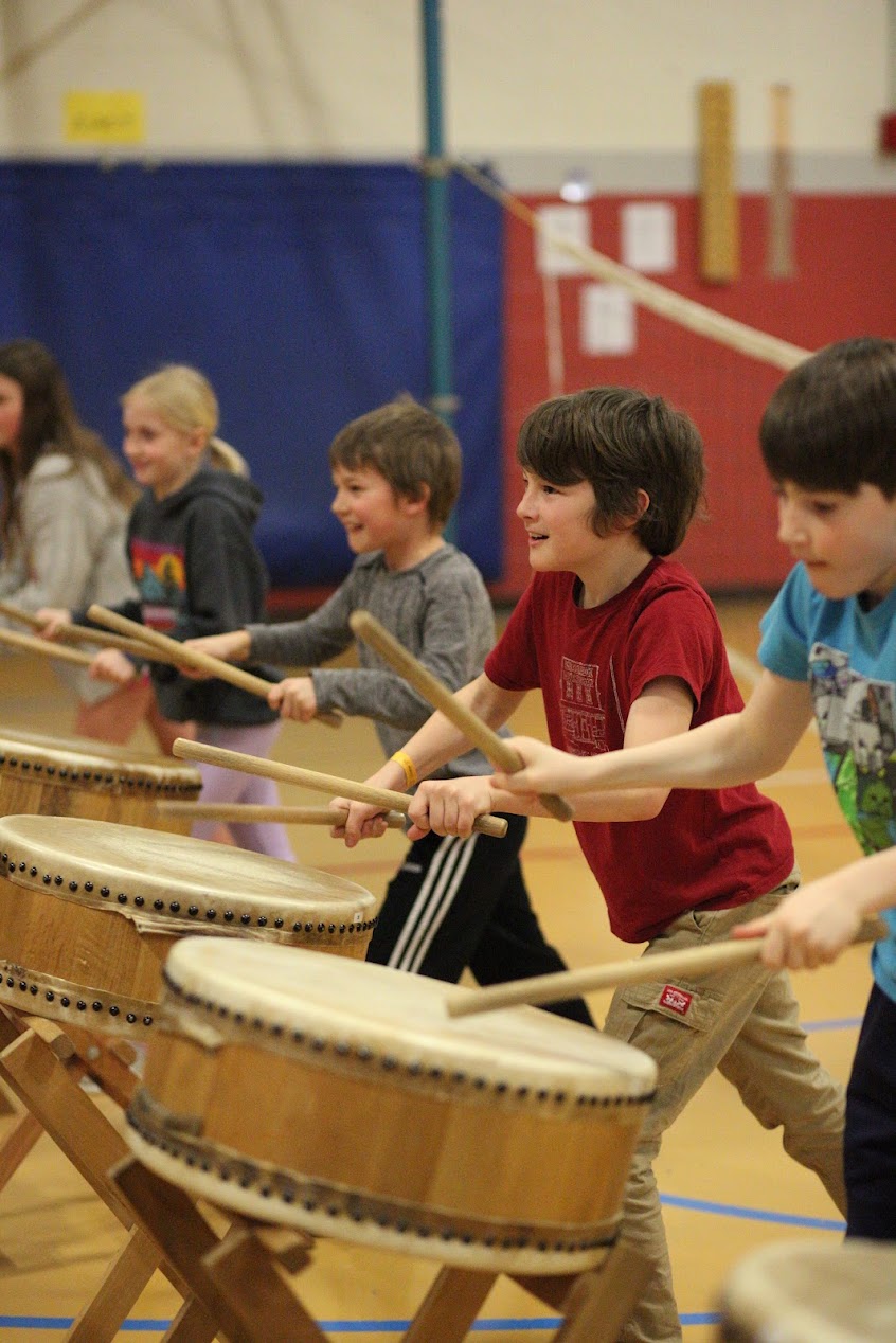 4th and 5th grade students at Smith Elementary and high schoolers at Project for Alternative Learning (PAL) had the amazing opportunity to work with Japanese Taiko artists Michelle Fujii and Toru Watanabe, of Unit Souzou. This dynamic duo taught basic Taiko principles and how to play on the first day of their residency, and day two found them focusing on self-expression and storytelling through the drum.